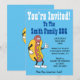 You're Invite To The Summer Family BBQ featuring a funny, cartoon hot dog on a light blue background. Get everyone in the party mood with the cool invitation. It's great for any cookout and featuring a smiling, thumbs up hot dog cartoon.