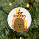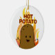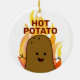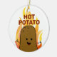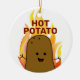 'Hot Potato' is a funny, comical ornament for that special person in your life. This fun gift features an adorable happy brown potato with sticks arms sticking out from either side of his body, little black dots for eyes and a big happy smile. Behind the potato are orange and red cartoon flames to show just how hot this potato is. Above him are the words 'Hot Potato' in a dark maroon text with a yellow outline. This is a templates if you want to change the text to customise. An ideal cute gift for the one you love.