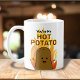 'You're My Hot Potato' is a funny, comical mug for that special person in your life. This fun mug features an adorable happy brown potato with sticks arms sticking out from either side of his body, little black dots for eyes and a big happy smile. Behind the potato are orange and red cartoon flames to show just how hot this potato is. Above him are the words 'You're My' in black text and 'Hot Potato' in a dark maroon text with a yellow outline. Both of these are templates if you want to change any of the text to customise. An ideal cute gift for the one you love.