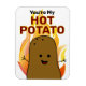 'You're My Hot Potato' is a funny, comical magnet for that special person in your life. This fun mug features an adorable happy brown potato with sticks arms sticking out from either side of his body, little black dots for eyes and a big happy smile. Behind the potato are orange and red cartoon flames to show just how hot this potato is. Above him are the words 'You're My' in black text and 'Hot Potato' in a dark maroon text with a yellow outline. Both of these are templates if you want to change any of the text to customise. An ideal cute gift for the one you love.