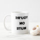 reverse print of you're on mute mug so can be read by your counterpart on a video meeting