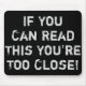 You're Too Close Funny Quote Mouse Pad