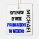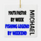 This ornament featuring the quote "Youth Pastor by Day Fishing Legend by Weekend" is perfect for any youth pastor that loves fishing.