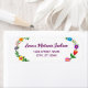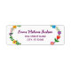 Stylish, modern custom return address label for one person (can be customised for a family as well), with a floral motif around the left and right edges, and with an elegant cursive handwriting script for the person's name or family name.