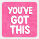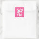 Playful motivational text chunky rounded typography in white on pink textured background.