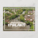 This design features fun text over a colourful photo of a dam on the Huron River in Ypsilanti Michigan.