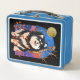 This is a standard metal lunchbox that appears to work just fine. We designed this box ourselves with an uploaded photo and custom text on the front and back. It looks absolutely beautiful except the front of the lunchbox is not centered like it shows in the photo. The print borders don't align with the inset flat part of the box where the preview photo online showed it perfectly centered in there. The back looks nice and centered though.
