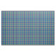 Traditional plaid pattern in shades of blue, yellow and green, with red, white and purple highlights. Pattern repeats every 2". Special order larger scale via https://plaidwerx.com/contact.htm
