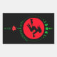 Red and green Yule design with moons, witch on a broom decorated with twinkle lights and a present.