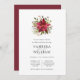 Elegant watercolor botanical rehearsal dinner invitation with your wedding ceremony rehearsal and dinner celebration details with a bouquet of watercolor ponsettia, holly and mistletoe and green leaves.