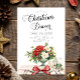 This elegant Christmas dinner invitation features a beautifully designed table place setting complemented by a rich red ribbon, creating a festive and inviting aesthetic. The intricate details of the flowers add a touch of sophistication, while the vibrant ribbon enhances the holiday spirit, making it the perfect choice for inviting friends and family to a memorable celebration. Ideal for setting the tone for a warm and joyous gathering, this invitation is sure to impress your guests.