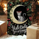 Yuletide Greetings Cat on Moon Christmas Holiday Card