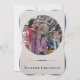 The design of the card typically features **bright, playful illustrations** of classic **holiday imagery** such as **Santa Claus**, **snowmen**, **reindeer**, **Christmas trees**, **presents**, and **festive decorations**. The artwork often has a **cartoonish or whimsical style**, with **vibrant colours** like red, green, gold, blue, and white to capture the joyful spirit of the season. There may also be **sparkling elements** like glitter, foil, or embossed textures that enhance the festive mood.