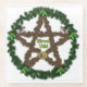 A star of pinecones encircled by a wreath of spruce boughs dotted with holly and topped off with a gold bow, all coming together with a pair of yuletide fairies to wish all a blessed Yule.