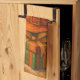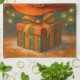Bring a little holiday enchantment to your kitchen with this magical towel. A crooked orange witch hat—complete with a shiny red ornament hanging from its tip—rests playfully atop a festive gift box wrapped in green and orange ribbons. Soft golden lights, a glowing Christmas tree, and a snowy windowsill create a cozy winter atmosphere full of charm and seasonal magic.