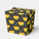 Everyone loves tacos!  This funny pattern has hand-drawn, cartoon style tacos on a custom black background colour. Express your love for tacos with this whimsical design on customisable paper party favour boxes. Shown here on a take-out style box.  Great for a taco party!