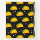 Everyone loves tacos! This funny pattern has hand-drawn, cartoon style tacos on a custom black background colour. Express your love for tacos with this humourous design on a customisable notebook. Great for any taco lover!