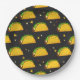 Everyone loves tacos! This funny pattern has hand-drawn, cartoon style tacos on a custom black background colour. Express your love for tacos with this whimsical design on customisable paper plates. Great for a taco party!
