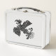 This is a standard metal lunchbox that appears to work just fine. We designed this box ourselves with an uploaded photo and custom text on the front and back. It looks absolutely beautiful except the front of the lunchbox is not centered like it shows in the photo. The print borders don't align with the inset flat part of the box where the preview photo online showed it perfectly centered in there. The back looks nice and centered though.