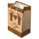 This brown and tan Bigfoot gift bag with a fanciful border says Happy Valentine's Day with room for your personalised names over the Sasquatch footprints. Embellished with a brown heart to match the original Bigfoot artwork, this Valentine gift bag in medium is for the couple who prefers unique and unusual.