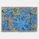 Blue And Yellow Astrum Vita Abstract Art Colourful Custom Throw Blanket. Can be customised to change the background colour and/or personalise this with your name, initials or a fun message. Astrum Vita is Latin for Star Life. The original design came about as a right brain experiment when I was having a creative block. Pen in my left hand, doodles upon swirls upon squiggles, until the shape emerged organically. Is it an amoeba, a starfish? Are those tentacles or seaweed waving about? Is there a hidden meaning in the pattern? Whatever it is, I decided Astrum Vita is definitely not from this world. Abstract art design in blues, yellows and purple.