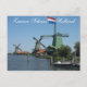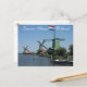 Zaanse Schans Holland Windmills Postcard. The windmills of the Zaanse Schans, Zaandijk, Zaanstad along the water with boats on a nice summer's day in Noord Holland, The Netherlands postcard. This great Zaanse Schans postcard is fully customisable, add your texts and images! A beautiful Holland postcard, send it to your friends and/ or family!