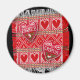 On a hand-woven Croatian mat, two licitar (red, heart-shaped biscuits) have the words Zagreb and Croatia written in white icing. These biscuits are very symbolic of this incredible European city and you will find them in almost every store. This image makes an excellent souvenir or Croatian gift. This magnet is fully customisable.