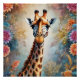 Towering elegance among the blooms. This 20" x 20" glossy poster features Zahra, a graceful giraffe with gentle, expressive eyes and a beautifully patterned coat, painted in soft, detailed watercolor. The natural ochre and cream tones of the giraffe stand out against a lush, flowered background, creating a serene and lifelike scene of peaceful savanna beauty. A truly enchanting piece.