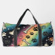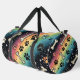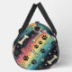 This colourful pattern duffle bag boasts a zany rainbow gradient background featuring various coloured paw prints and playful bones with star accents. It's a cute design pet accessory and versatile travel gear, perfect for any pet lover.