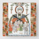 Image of Zao Chun Chinese kitchen god bordered by tiled images of ginger. A gold orb at either side contains the name of the kitchen god in Chinese. The orbs also mark the 3 and 9 positions on the clock. Zao Jun, also known as the Kitchen God or the Lord of the Hearth is a very popular deity in Chinese folk religion. He is the protector of the family and an image or picture of him is fixed above the hearth (kitchen) and from this position he notes everything that happens in the house. The kitchen god is used as a protective, strong feng shui energy in the kitchen.