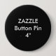 Zazzle Custom 4" Huge Button Pin Blank Template. BLACK.