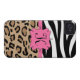 Personalised zebra and leopard print pink personalised monogram Case-Mate Barely There™ iPhone 4 Case. Click the orange Customise It button to change the font.