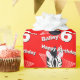 Birthday wrapping paper in bright red with a zebras face design. Personalise this zebra art birthday paper with your child's name and age. Currently reads Happy Birthday Bailey 6 today. Zebra face painted in watercolor and designed by Sarah Trett.