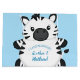 An adorable cartoon zebra baby shower design that is perfect for a safari party! The cute zebra has a blue background that makes it great for a boy on the way!