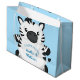 Zebra Baby Shower Safari Blue Boy Large Gift Bag