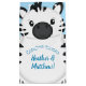 An adorable cartoon zebra baby shower design that is perfect for a safari party! The cute zebra has a blue background that makes it great for a boy on the way!