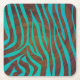 Zebra Brown and Teal Print Square Paper Coaster