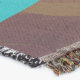A quality printed throw has its advantages. This is a much finer weave throw than its loopier cousins, and though lighter, it is worth the investment for custom room accessorizing. The back is much prettier than the typical brown, and the fringe on the long sides very vivid, the selvage nicely done. Before photographing, I washed the throw in cold water, delicate, with a thicker woven throw the same size. On tumble dry low, this throw was dry in half the time as the other. This is a very practical quality if you use throws for furniture covers or to wrap up in frequently. The sleekness of the fabric makes it a great layer for accenting or protecting without the feeling of sitting on too much stuff. Perfect for napping or when you feel a light chill coming on. The color printing is beautiful and on this fabric, matched the design and color of my Photoshop image. This is an advantage for blending room fabrics and colors. The fringe on the short sides prints the colors from the design image and therefore varies from the side fringe. I streaked a white fractal line through the plaid pattern to give the illusion of weaving. This printed as crisp as an illusory thread, and put some white in the short side fringe, showing another advantage of print vs loomed- for artistic purposes, line lines, detail, and color integrity can be planned and preserved. My loomed throws have color limitations and more of a needlepoint texture. Print throws reproduce an exact image. The throw felt a little stiff straight out of the package, but this went away in the first delicate wash. Of course I searched the wash water for ink or bleeding and there was none.