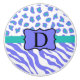 Add a trendy decorative accent to a room with this colourful drawer knob. Enjoy this sophisticated and stylish combination of zebra stripe skin and leopard or cheetah skin personalised with your monogram initial. This popular and trendy lavender periwinkle purple and white zebra and leopard print design pattern is available in several colour combinations. A periwinkle emblem in on a turquoise teal blue or aqua stripe creates a personalisation area for your monogram or a name. This is fully customisable and is available on several coordinating products in this store.
