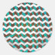 Zebra Chevron Brown and Teal Print Classic Round Sticker