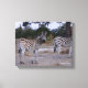 Double Take Zebras Nature Photo prints and gifts feature a beautiful photograph of two zebras both looking out at the viewer taken during a snack break by Kurt Keller with a 35 mm camera while on an African safari in Botswana, South Africa and Zimbabwe. Every zebra is unique wears his own pattern of stripes despite the double take. Anyone who loves African animals, wildlife, and any zebra lovers will appreciate this beautiful photo of a two zebras standing in the savanna.