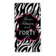© 2015 Socialite Designs. Sassy and chic zebra 40th birthday wine labels with text saying Fierce, Fabulous and Forty. The forty text has a diamond-cut design with a pink crown.