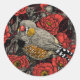 Zebra finch and red rose bush classic round sticker