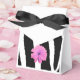 A modern classic black and white zebra pattern with a pretty flower accents these favor boxes.