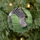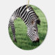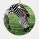 Ceramic decorative ornament with an image of a zebra grazing on some lush green gras.