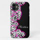 Girly, pink, black and white pattern with animal print hearts. Customise it with your own text !