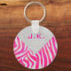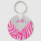 Zebra Hot Pink and White with Monogram Key Ring