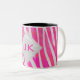 Zebra Hot Pink and White with Monogram Two-Tone Coffee Mug
