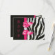 Personalised RSVP flat note cards printed on invitation paper of your choice. Elegant custom black and white zebra stripes and hot pink printed bow personalised rsvps for any event:- weddings, baby showers, bridal showers, womens birthday party, sweet 16 parties, quinceanera celebrations etc. with funky black and white zebra animal fur stripes pattern printed image, cute, shiny, girly hot pink printed bows and ribbons images and pretty digital diamonds bling jewels on a black background with fancy cursive hot pink text. Please note: All invites on Zazzle have flat printed images. These classy, fashionable, fun and glamourous, glitz and glamour cards are decorated / printed on both sides. Beautiful, chic, trendy, modern personalised cards. Text, font and colour of font can all be customised to meet your needs. If you need assistance customising your product please contact me through my store. I will be happy to help. I have matching products in my store.
