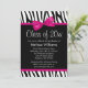 Zebra Hot Pink Printed Bow Graduation Party Invitation
